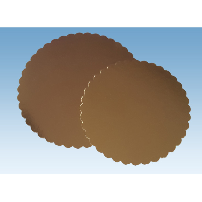 Okrągły podkład pod tort z tektury litej pokrytej folią laminującą.